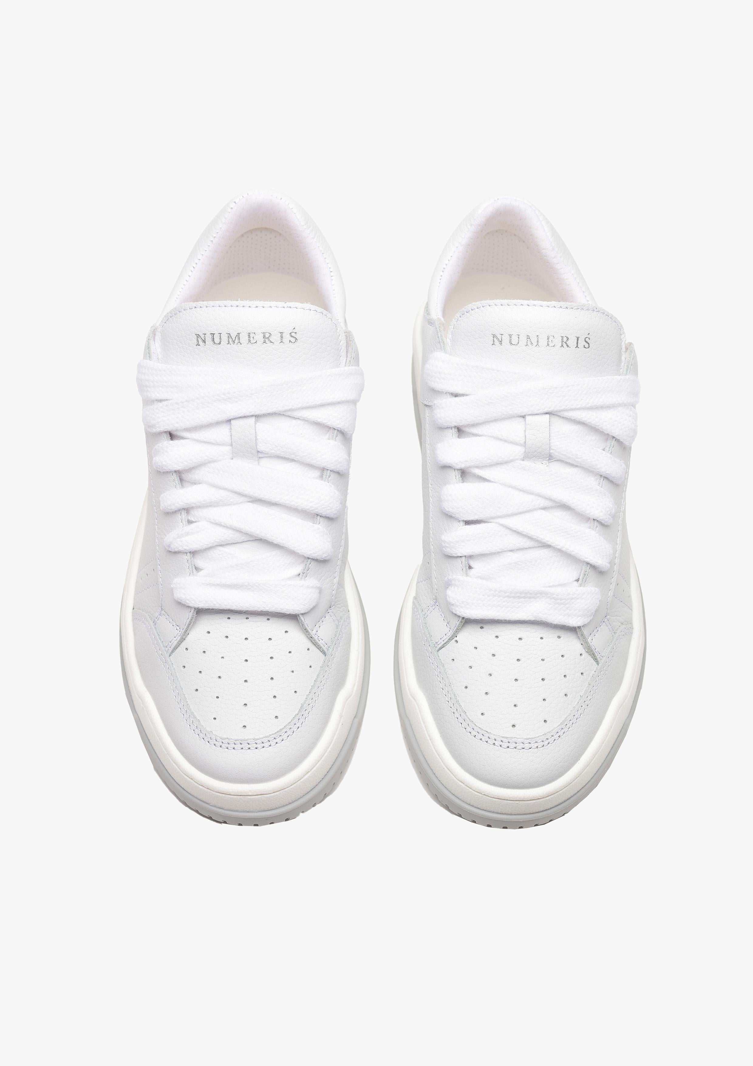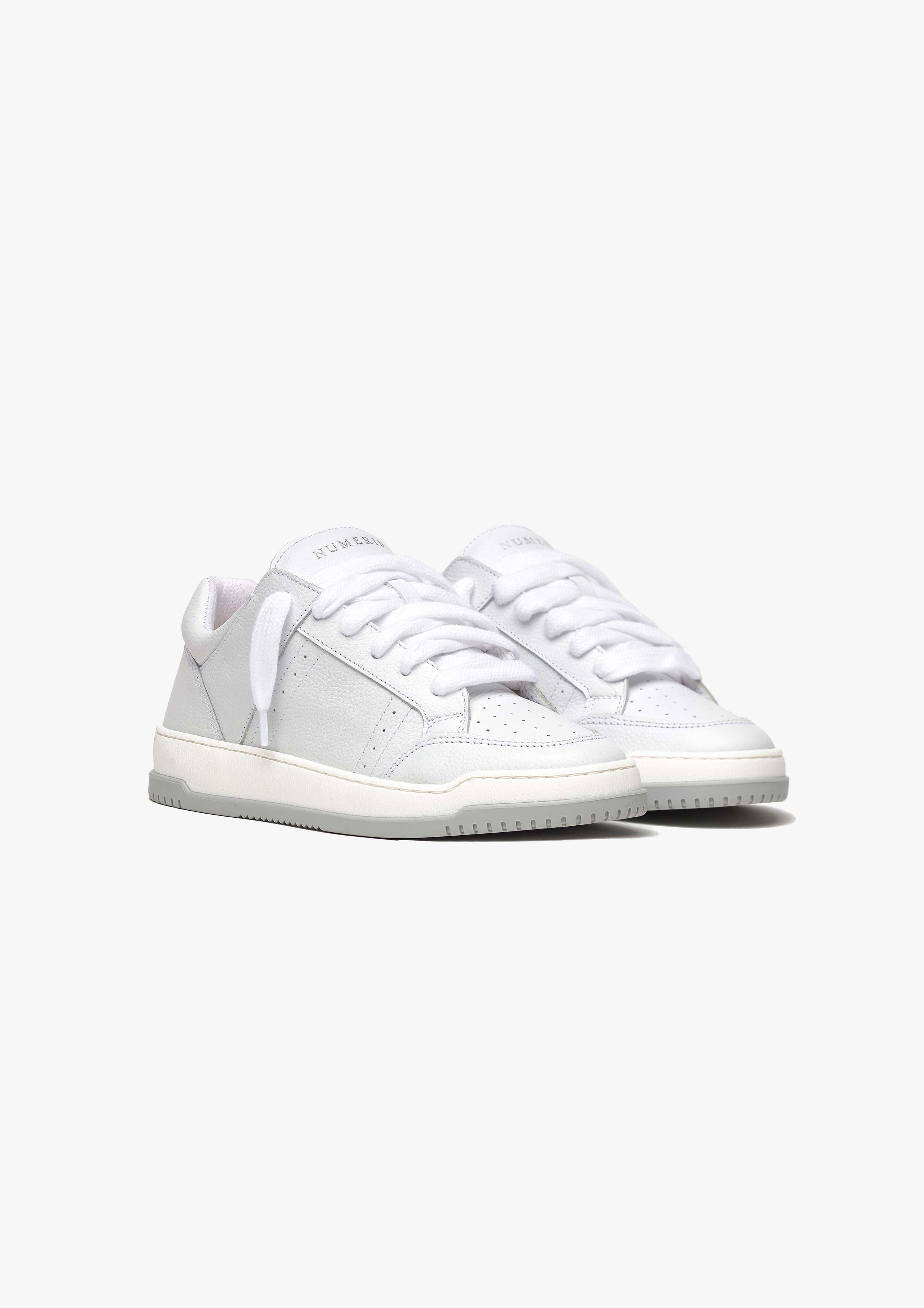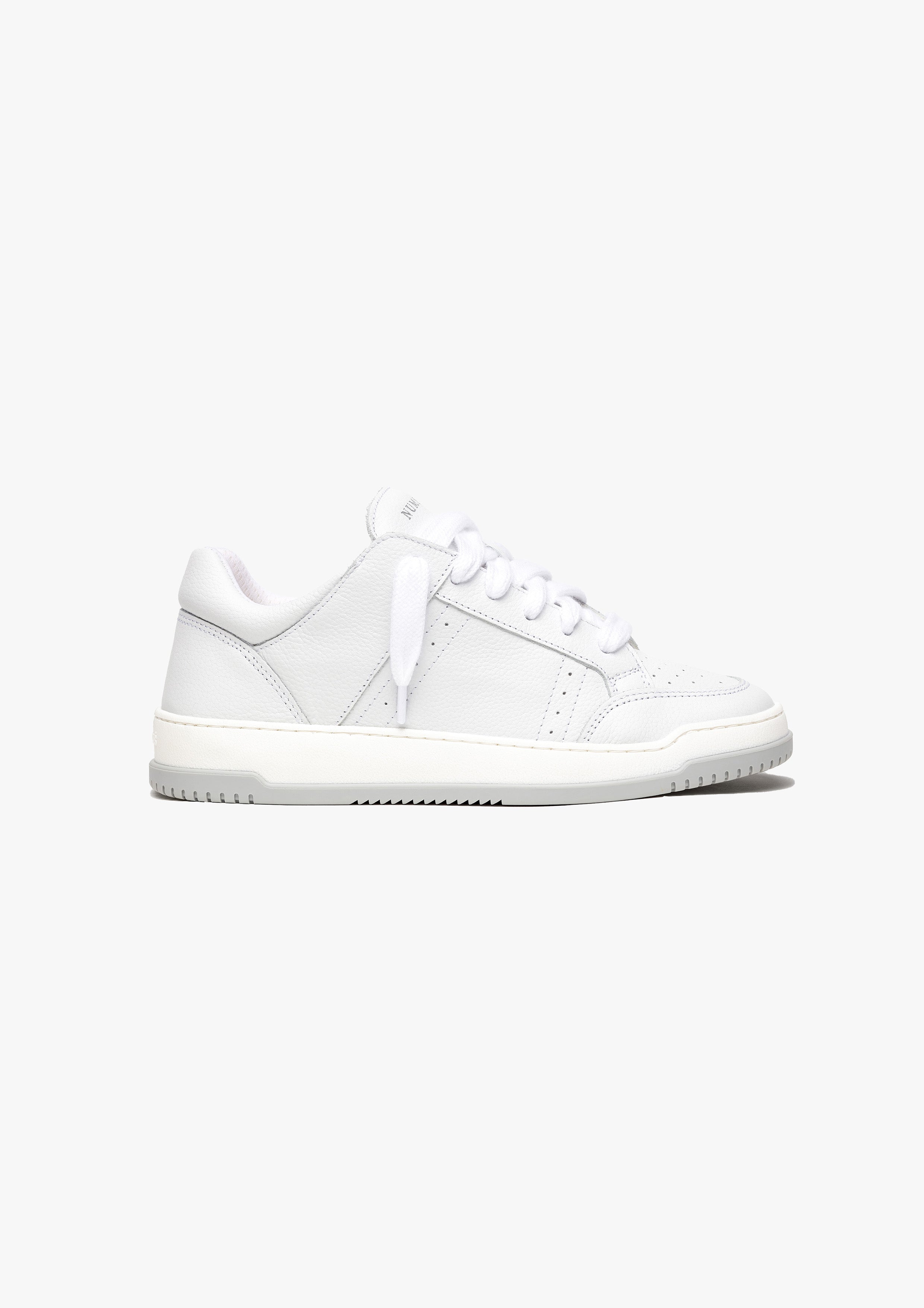 La sneaker Arena allie luxe quotidien et esthétique sportswear. La couleur Milk présente un dessus en cuir entièrement blanc, complété par des lacets blancs de 10 mm. L'intérieur de la chaussure est doté d'un rembourrage au niveau du col, offrant un confort inégalé. Le dessus repose parfaitement sur notre semelle personnalisée bicolore grise et blanche. La semelle elle-même arbore le logo Numeriś embossé à l'arrière et est gravé sur la semelle intérieure.