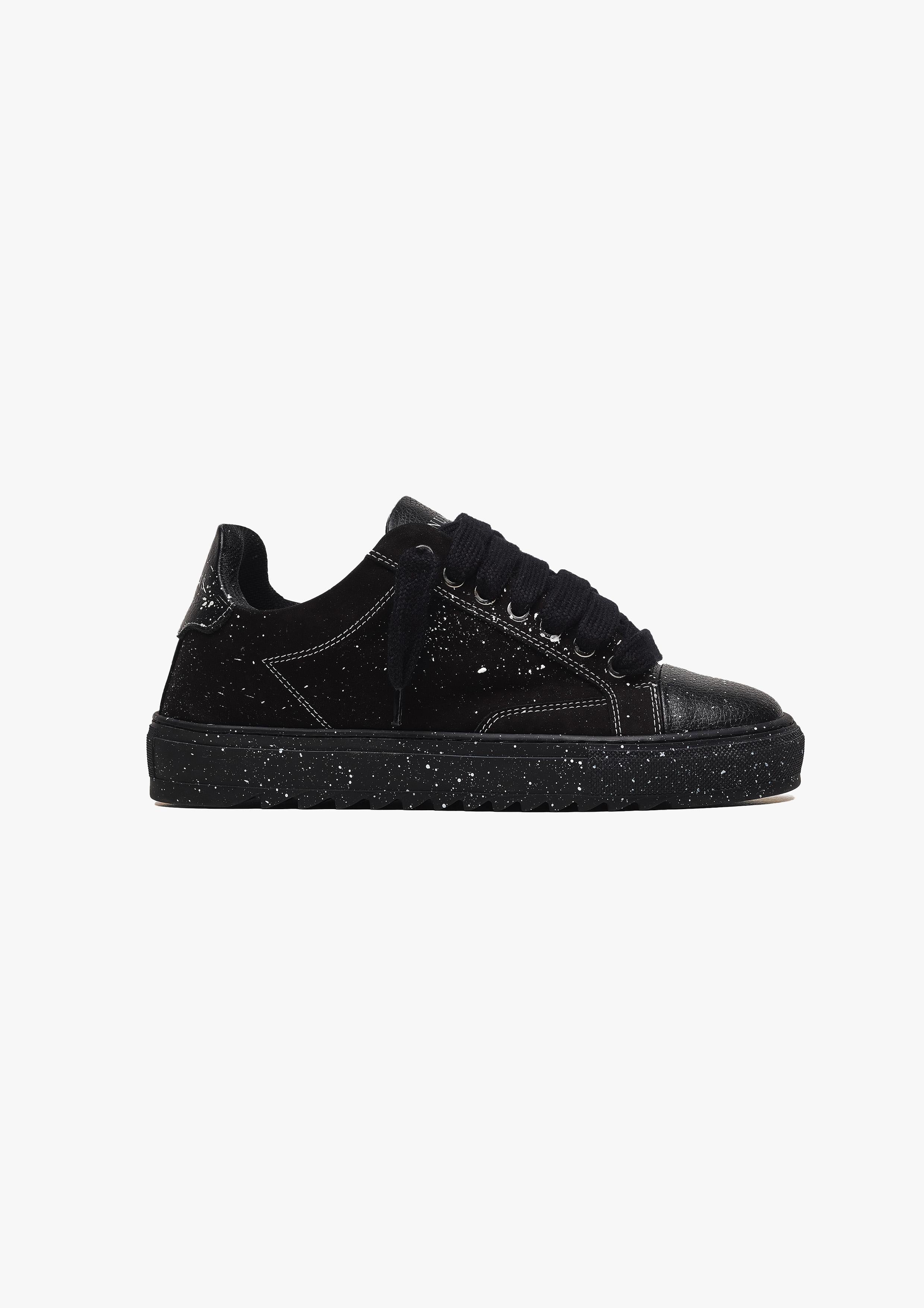 A completare questa caratteristica distintiva, il puntale in pelle nera a grana marcata aggiunge un tocco di raffinatezza al design. All’interno, la scarpa è dotata di una fodera imbottita al colletto che migliora l’esperienza complessiva di utilizzo. I dettagli finali includono il nostro marchio distintivo Numeriś sulla linguetta e sul tallone, accompagnato dallo slogan che definisce questo modello: «Il design è un pensiero reso visibile».
