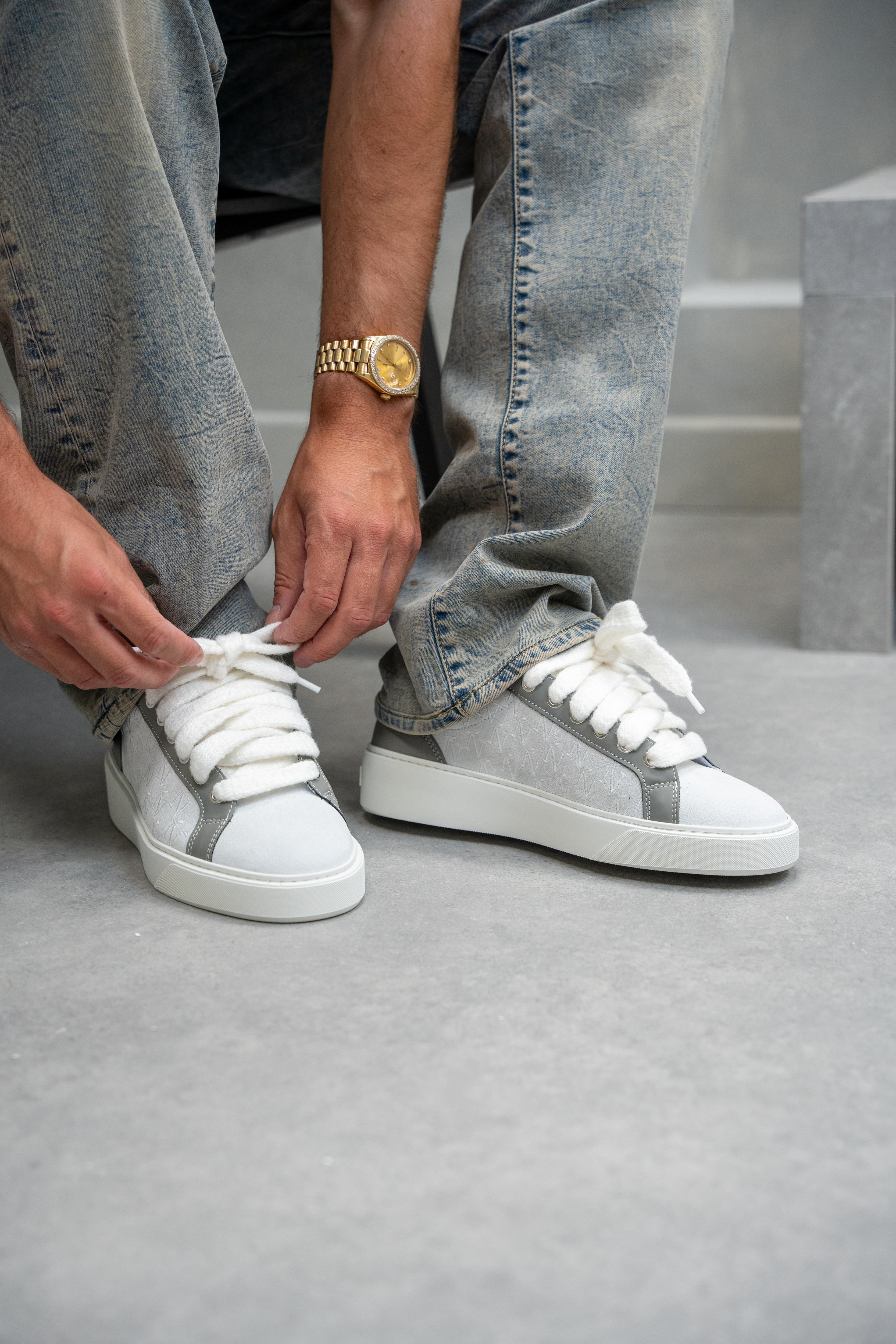 La teinte Graphite présente un gris clair italien, des lacets blancs en mohair de 10 mm, panneaux latéraux gris clair et cuir sur mesure renforcé par du TPU courant le long de la tige des œillets. Ceux-ci sont accompagnés de notre élégant logo monogramme Ń brodé à la main. L'intérieur de la chaussure présente une doublure de col noire offrant un confort inégalé. La tige repose parfaitement sur notre toute nouvelle semelle en caoutchouc complexe, exclusivement conçue pour Sigńet. Notre logo argenté distinctif est positionné sur la languette.