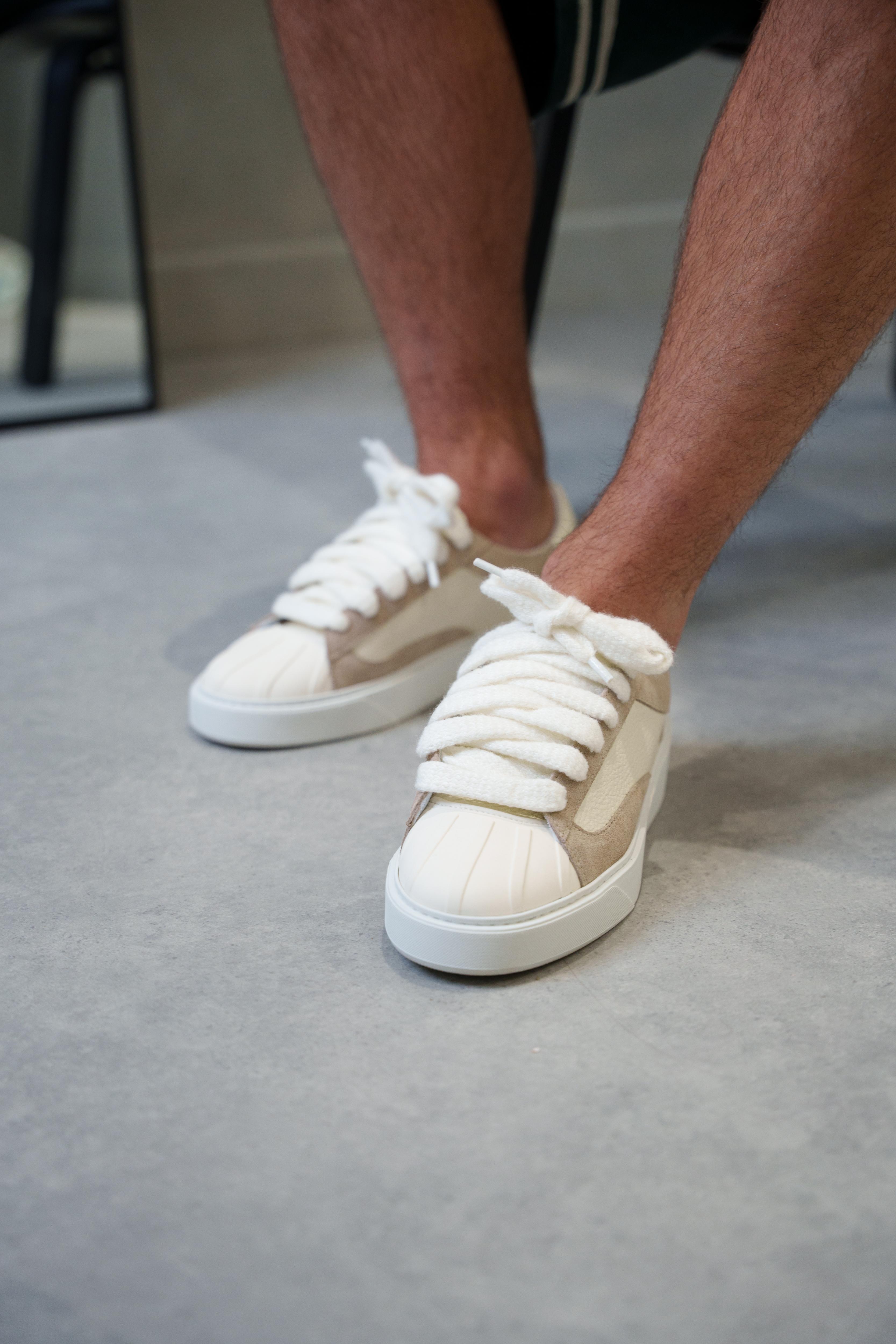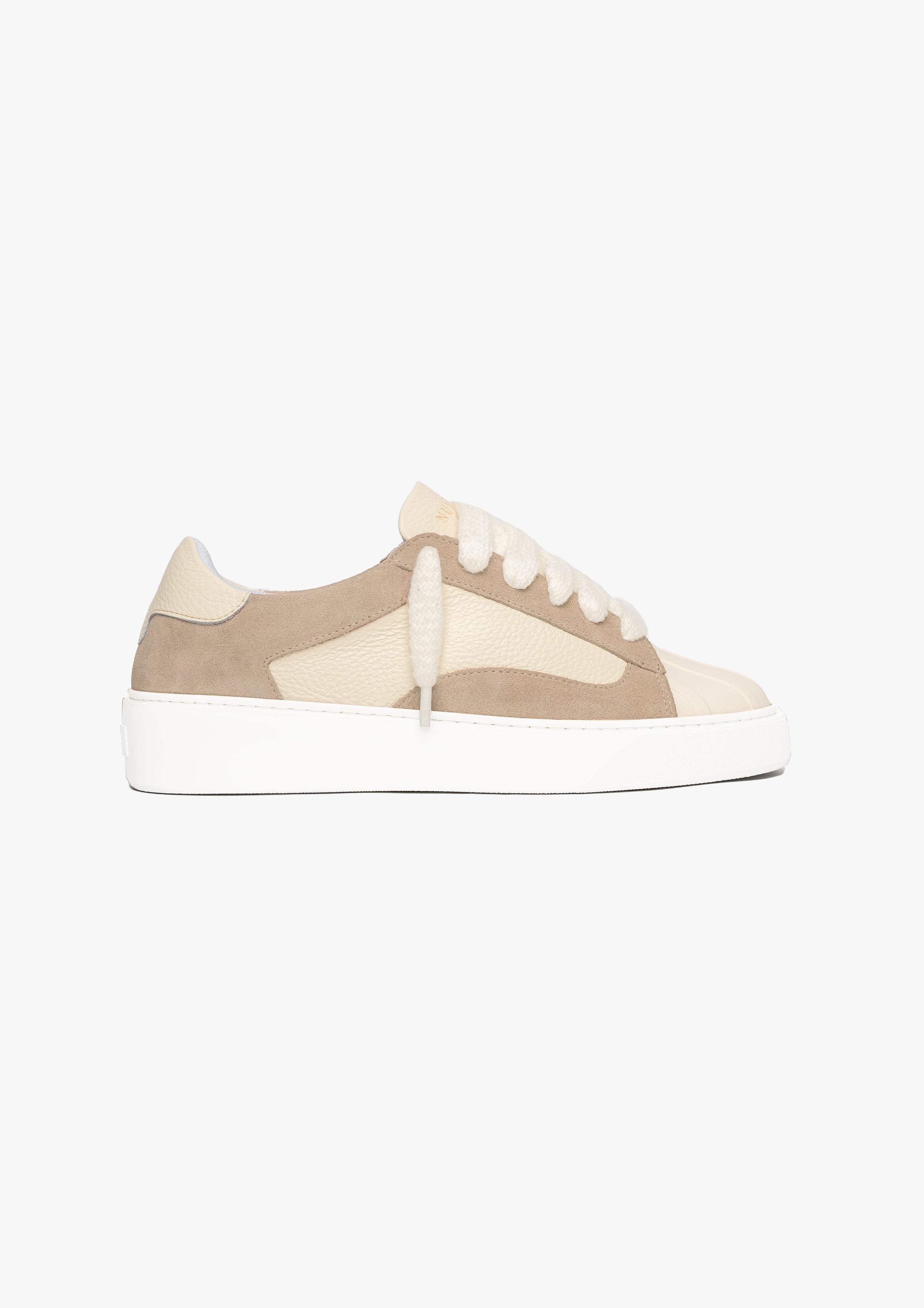 La teinte Dune présente un mélange de Cuirs et suède italiens. Avec du mohair beige de 10 mm de large lacets, chaque paire est douce au toucher et légèrement texturée. La marque Numeris est positionné le long de la languette, créant une esthétique épurée. Tout cela repose sur notre semelle conçue sur mesure, développé exclusivement pour l'Eclipse - pour soutenir l'orteil en coque de caoutchouc.