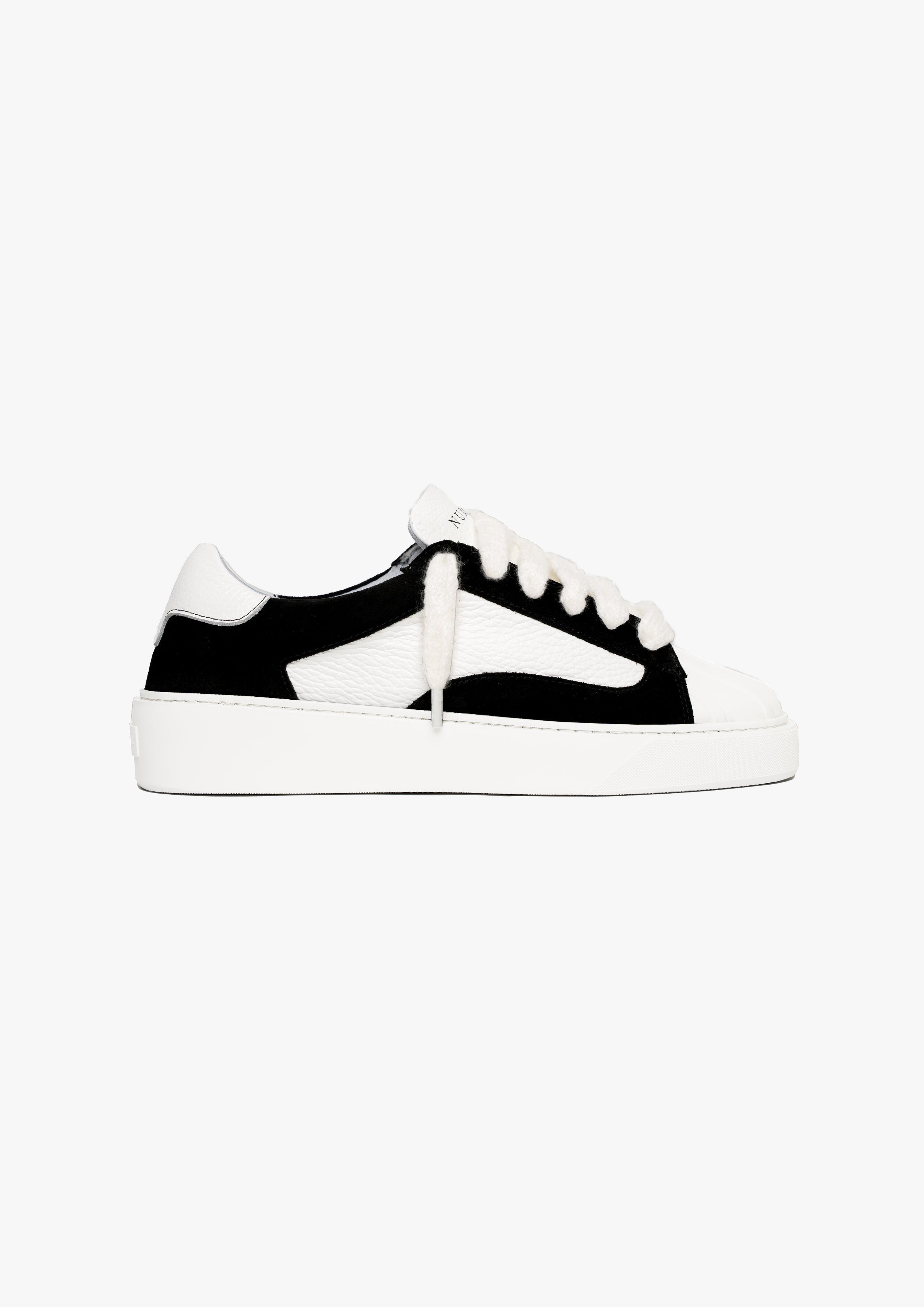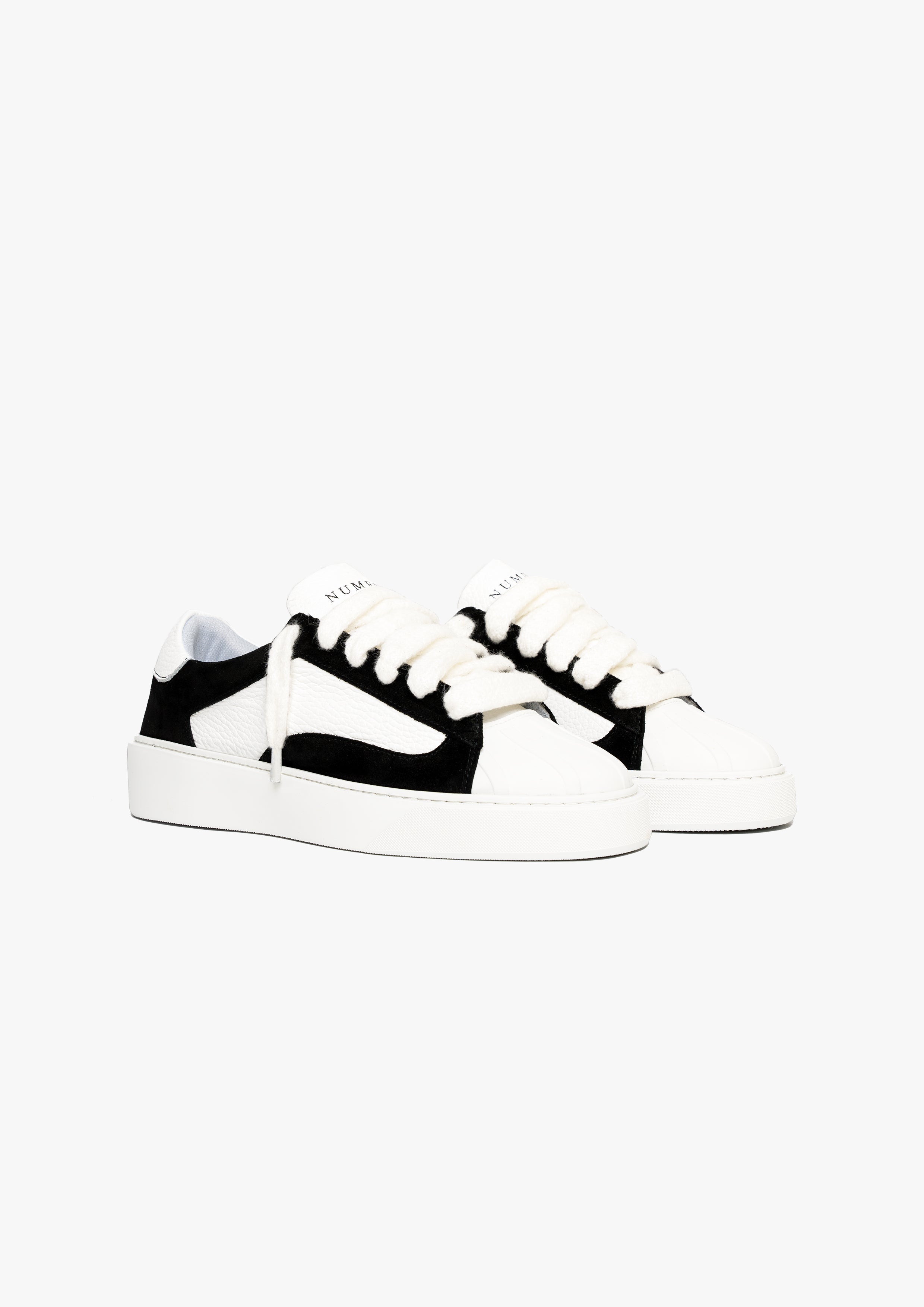 La couleur Jet présente un mélange de Cuirs et suède italiens. Avec du mohair de 10 mm de large lacets, chaque paire est douce au toucher et légèrement texturée. La marque Numeris est positionné le long de la languette, créant une esthétique épurée. Tout cela repose sur notre semelle conçue sur mesure, développé exclusivement pour l'Eclipse - pour soutenir l'orteil en coque de caoutchouc.