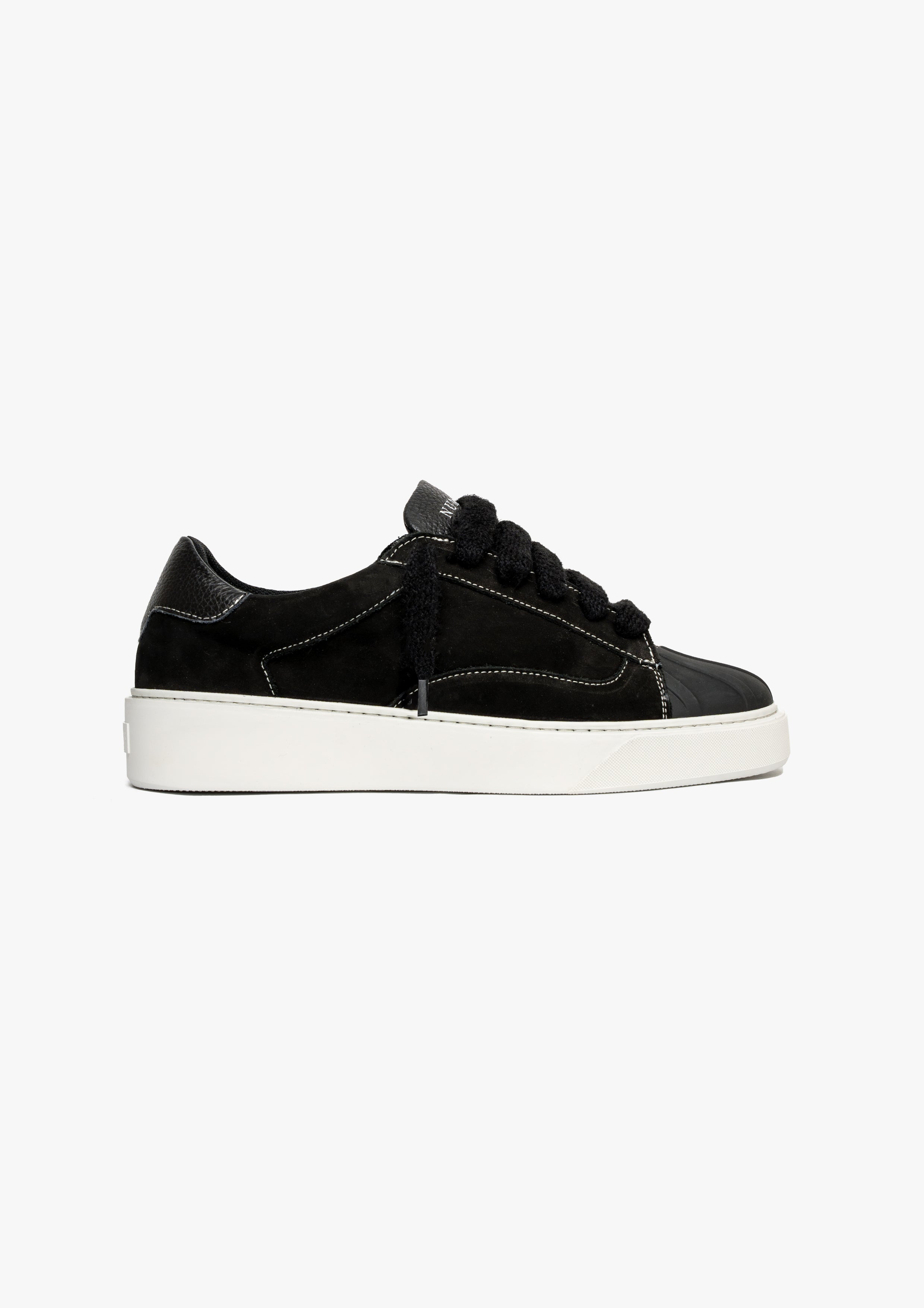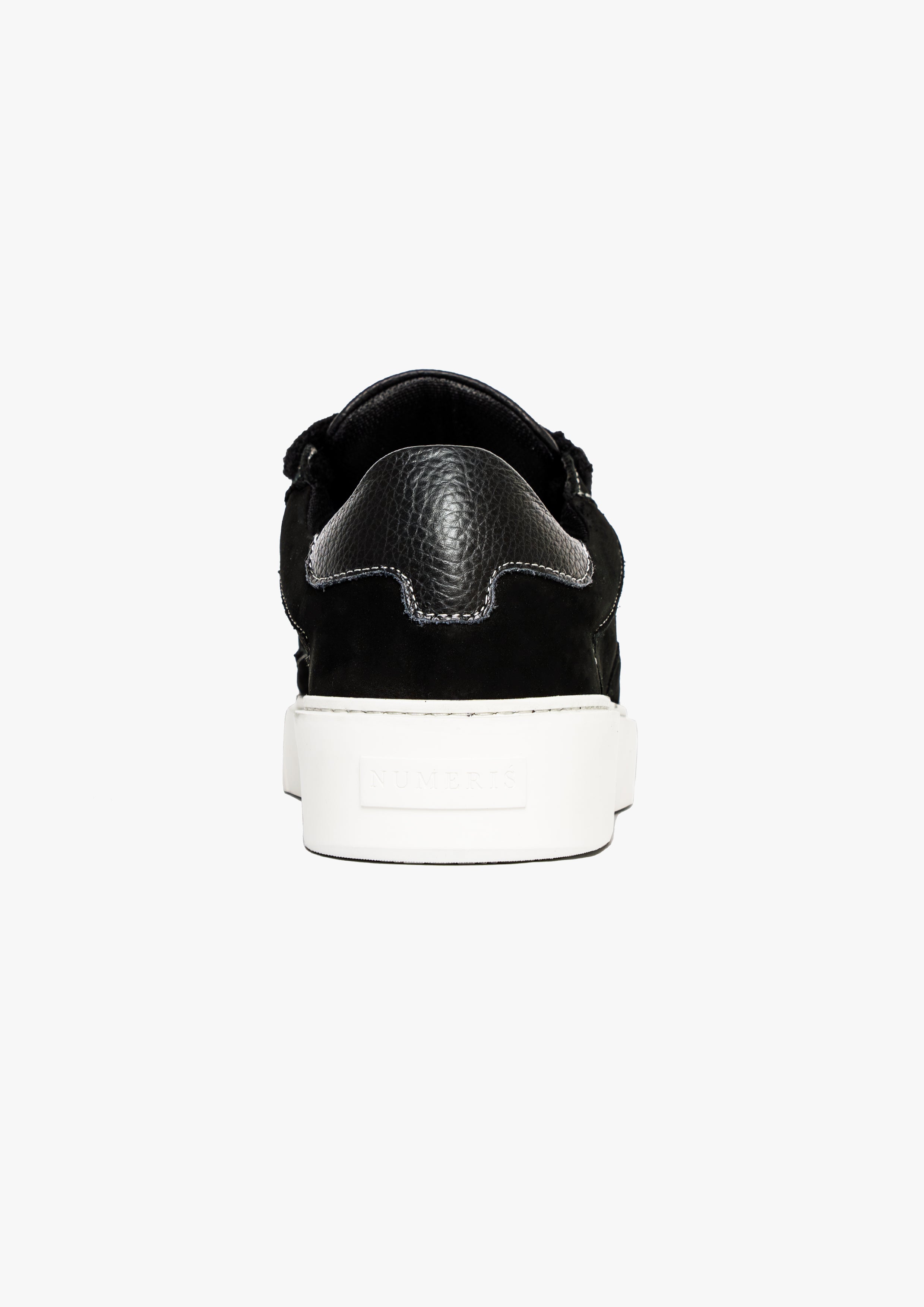 La version couleur Aqua présente un noir intégral Tige en nubuck italien contrastée par des surpiqûres blanches nettes. Dotée de lacets en mohair larges de 10 mm, chaque paire est douce au toucher et légèrement texturée. Le logo Numeris est positionné sur la languette, créant une esthétique épurée. Le tout repose sur notre semelle spécialement conçue, développée exclusivement pour l'Eclipse - pour soutenir l'embout en caoutchouc.