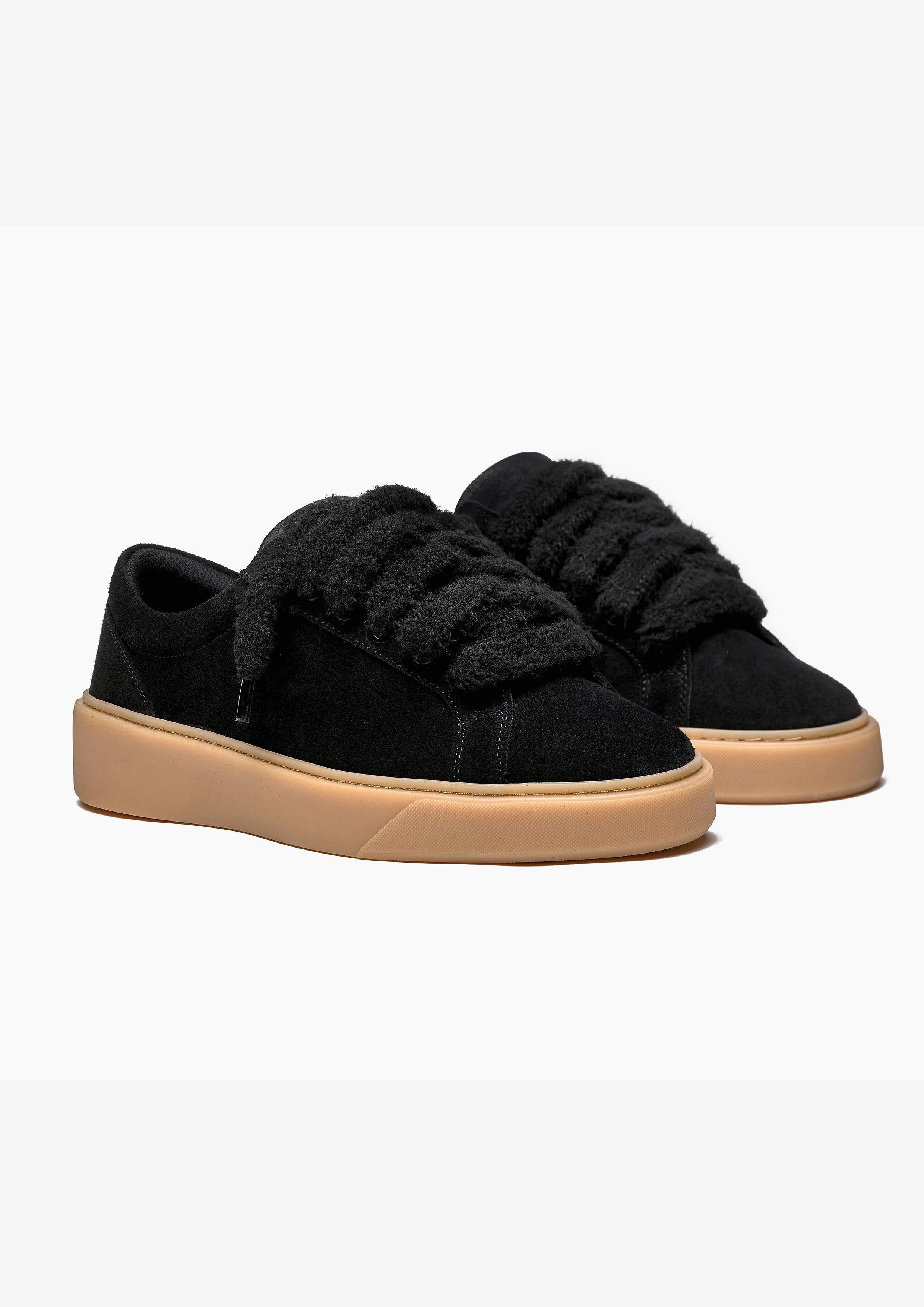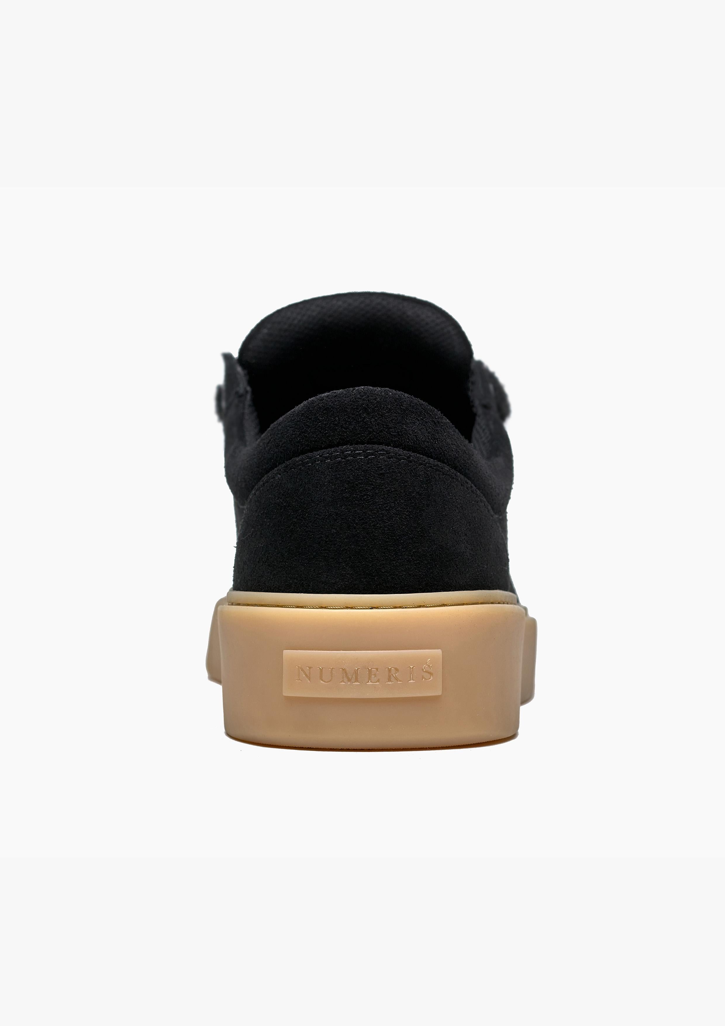 La sneaker Sigńet est dotée d'une tige en daim italien entièrement noire accompagnée de lacets noirs moelleux de 20 mm. L'intérieur de la sneaker est doté d'une doublure noire au niveau du col pour un confort inégalé. La tige repose parfaitement sur notre toute nouvelle semelle en caoutchouc complexe, fabriquée exclusivement pour Sigńet. Notre logo argenté distinctif est positionné sur la languette.