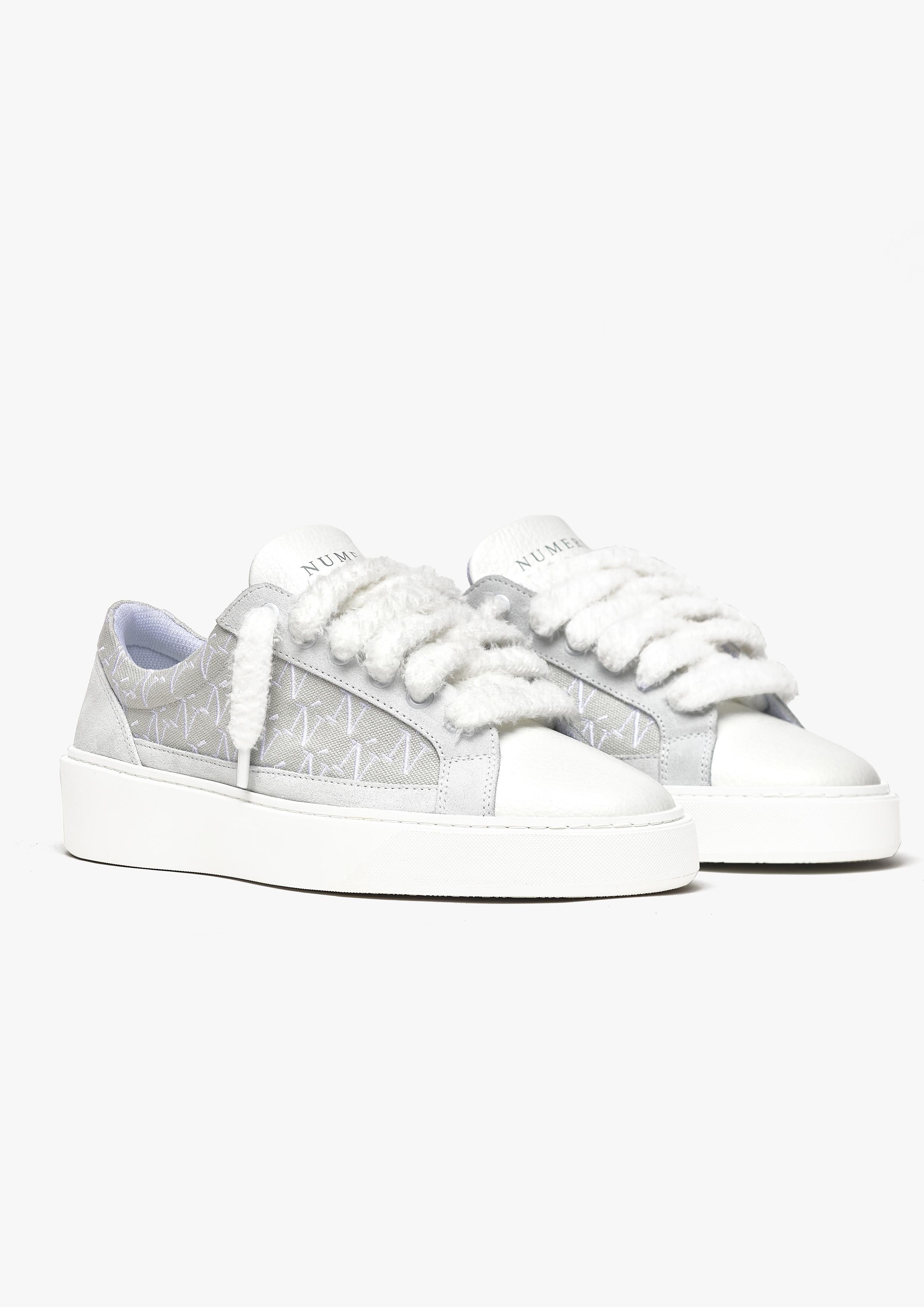 La sneaker Sigńet est dotée de daim noir italien, de lacets blancs moelleux de 20 mm, de panneaux latéraux en toile gris clair accompagnés de notre élégant logo monogramme Ń brodé à la main. L'intérieur de la sneaker est doté d'une doublure de col grise offrant un confort inégalé. La tige repose parfaitement sur notre toute nouvelle semelle en caoutchouc complexe, fabriquée exclusivement pour Sigńet. Notre logo argenté distinctif est positionné sur la languette.